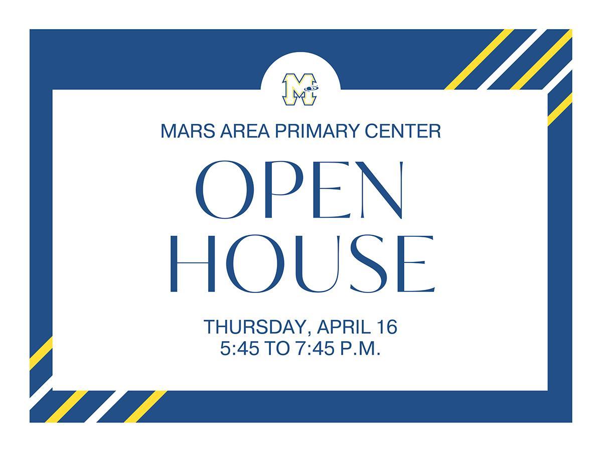 Mars Area Primary Center will offer its Spring Open House from 5:45 to 7:45 p.m. on Thursday, April 16.